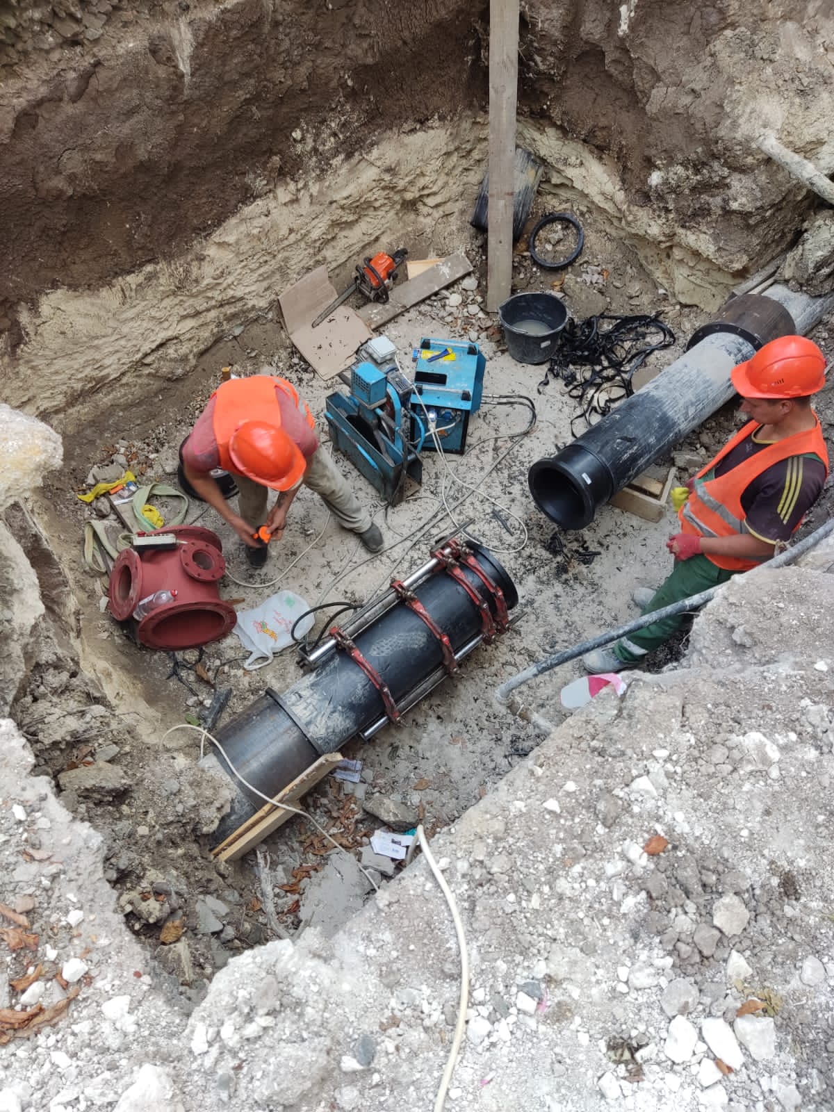 Монтаж бытового, промышленного, пожарного, оросительного или оборотного водопровода выполняется подземным траншейным или бестраншейным способом с использованием стальных или композитных труб и современной арматуры со строительством колодцев и резервуаров;